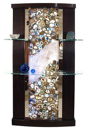 Perczek designs furniture and illuminated interior panels with natural crystals and natural shells that have unique healing properties based on their vibration and colors. "Everything we surround ourselves with — our furniture, our artwork, the layout and flow of our space — reflects, contributes to and influences our own energy," Jaime says. He pauses and his eyes close momentarily, as if allowing his mind to weave a vision of the space that perfectly complements his clients' personal styles and energies. Breathing deeply, he smiles, opens his eyes, and continues: "When in balance, it inspires our desire to create harmony with the outer world. The energy of our surroundings is elevated and thus we feel peaceful, we feel happy."